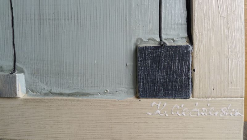Obraz akrylowy, technika mieszana, podłoże i rama drewno lite dąb lakierowane, przygotowany do powieszenia , fakturalny, werniksowany, sygnowany, wymiar 39,5 cm x 39,5 cm . Istnieje możliwość przesłania dokładniejszych zdjęć .
