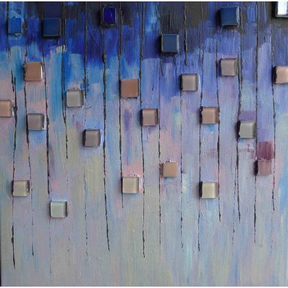 Obraz akrylowy, z elementami mozaiki, podobrazie płótno 120 cm x 40 cm ( 40 cm x 40 cm - 4szt), werniksowany,przygotowany do powieszenia bez potrzeby ramy- zamalowane boki w tonacji obrazu.