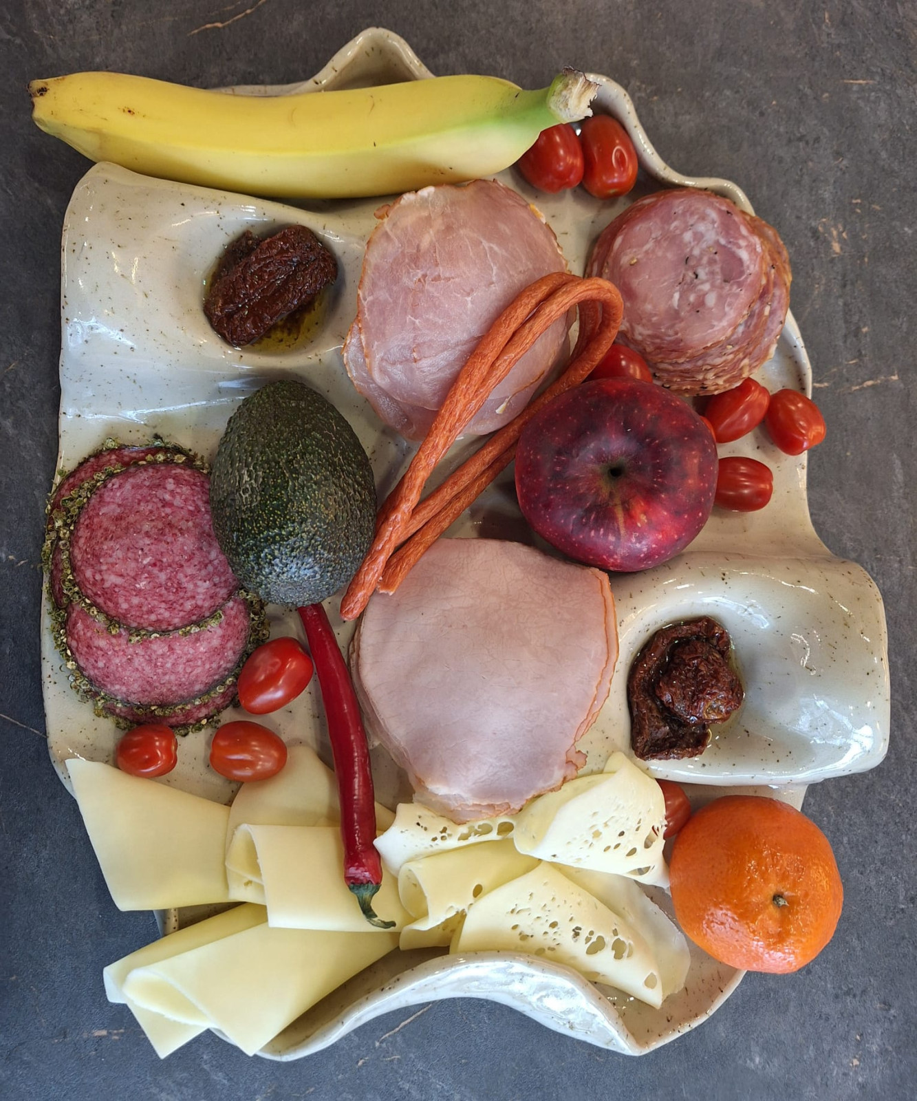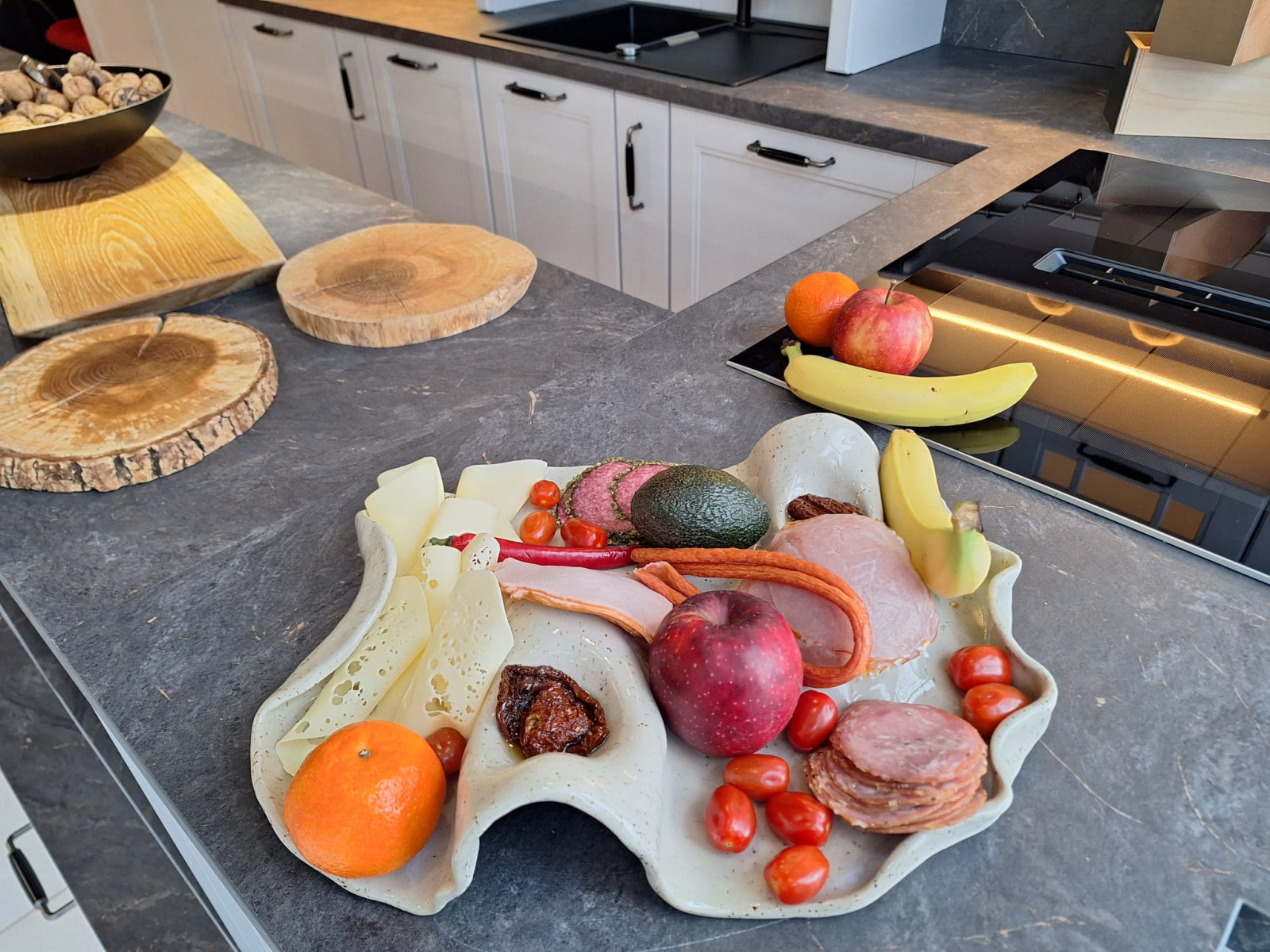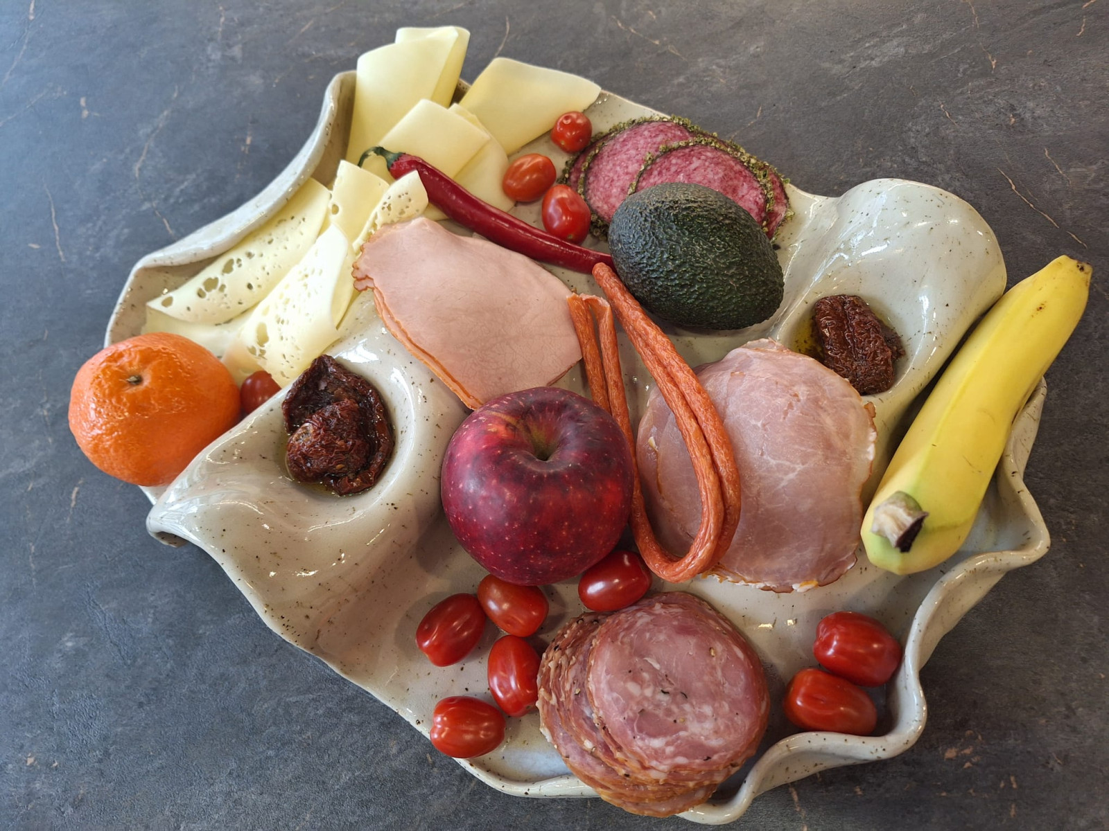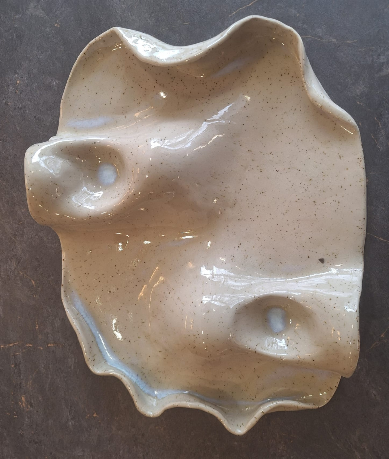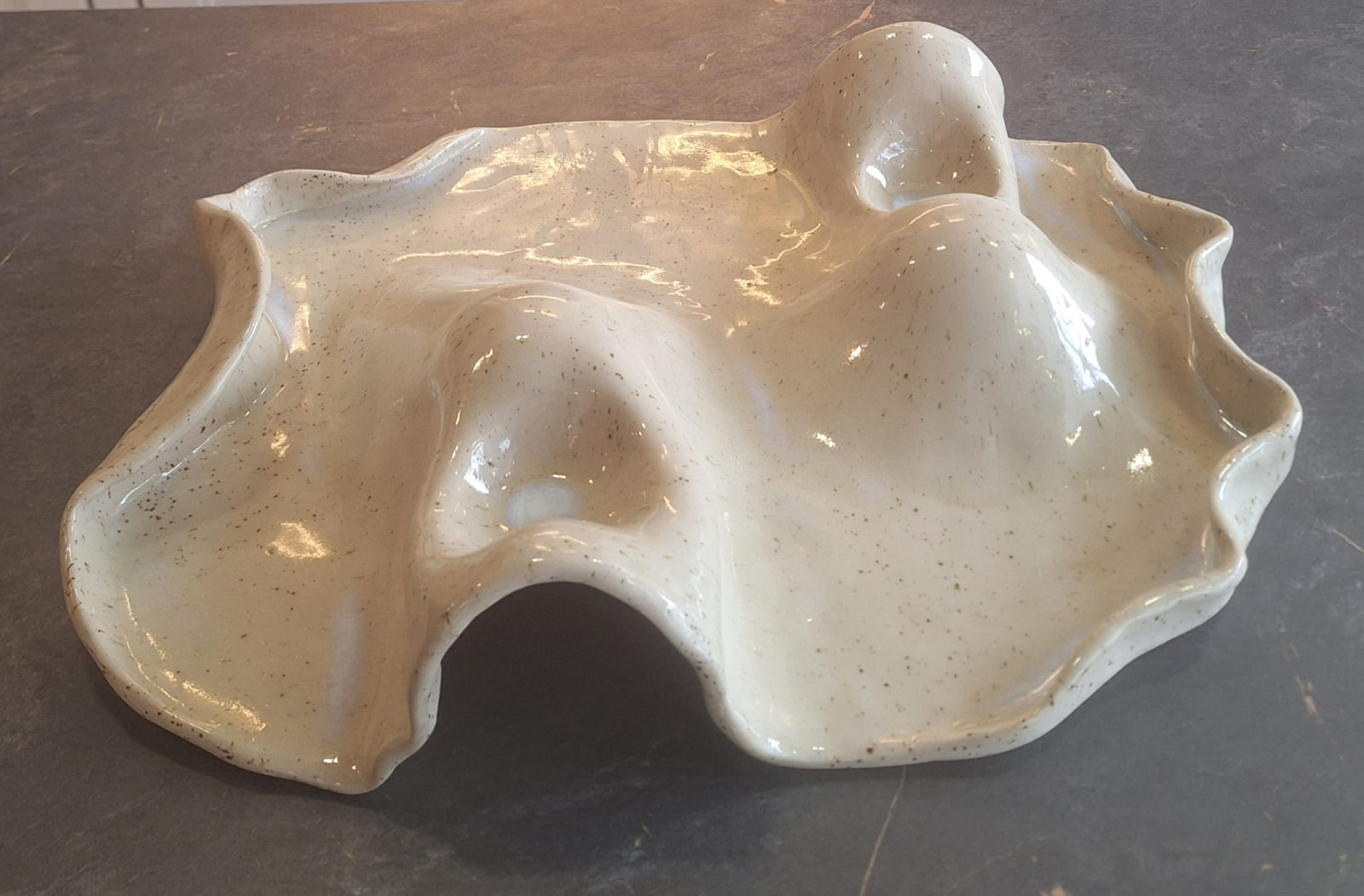Patera ceramiczna w tonacji brązów, beżów czerni, szarości, naturalne kolory ziemi. Wypalana dwukrotnie na kamionkę w temperaturze 1240 stopni. Szkliwa dopuszczone do kontaktu z żywnością. Można myć w zmywarce. Wymiary 45cm x 35 cm x 8,5 cm