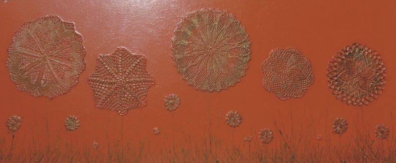 Obraz akrylowy, kolaż - elementy rękodzieła, podobrazie płyta MDF, krawędzie zamalowane w tonacji obrazu, powierzchnia fakturalna, zabezpieczony werniksem, sygnowany, przygotowany do powieszenia bez potrzeby ramy. Wymiar 140 cm x 61 cm . Idealny do nowoczesnych wnętrz - salonu lub sypialni lub na oryginalny prezent dla bliskiej osoby .Na życzenie prześlę dokładne zdjęcia.