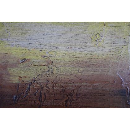 Obraz akrylowy, sygnowany, podobrazie płyta, krawędzie zamalowane w tonacji obrazu, powierzchnia fakturalna, zabezpieczony werniksem, przygotowany do powieszenia bez potrzeby ramy.