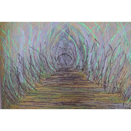 Obraz akrylowy,technika mieszana, podłoże płyta mdf , przygotowany do powieszenia – nafrezowania umożliwiające powieszenie obrazu bez potrzeby ramy i dodatkowych mocowań, boki zamalowane w tonacji obrazu, werniksowany, sygnowany,wymiar 65 cm x 50 cm .