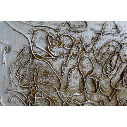 Obraz akrylowy, technika mieszana, podłoże płyta ,przygotowany do powieszenia w dowolnej pozycji bez potrzeby ramy i dodatkowych mocowań, fakturalny, kolaż, boki zamalowane w tonacji obrazu, werniksowany, sygnowany, wymiar 60cm x 60 cm x 2 cm . Istnieje możliwość przesłania dokładniejszych zdjęć jak również wykonania w dowolnym wymiarze i dowolnej tonacji.
