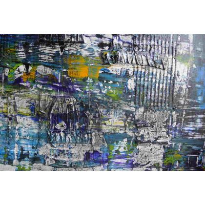 Obraz akrylowy, technika własna, podobrazie płyta mdf , krawędzie zamalowane w tonacji obrazu, powierzchnia fakturalna, zabezpieczony werniksem, przygotowany do powieszenia – nafrezowania umożliwiające powieszenie obrazu bez potrzeby ramy i dodatkowych mocowań.