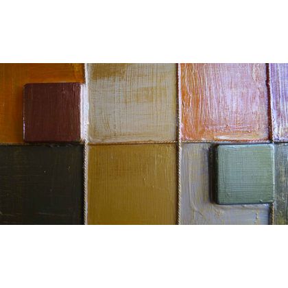 Obraz akrylowy, technika mieszana, podłoże płyta ,przygotowany do powieszenia w dowolnej pozycji bez potrzeby ramy i dodatkowych mocowań, fakturalny, boki zamalowane w tonacji obrazu, werniksowany, sygnowany, wymiar 50cm x 35 cm x 2 cm . Istnieje możliwość przesłania dokładniejszych zdjęć jak również wykonania w dowolnym wymiarze i dowolnej tonacji.