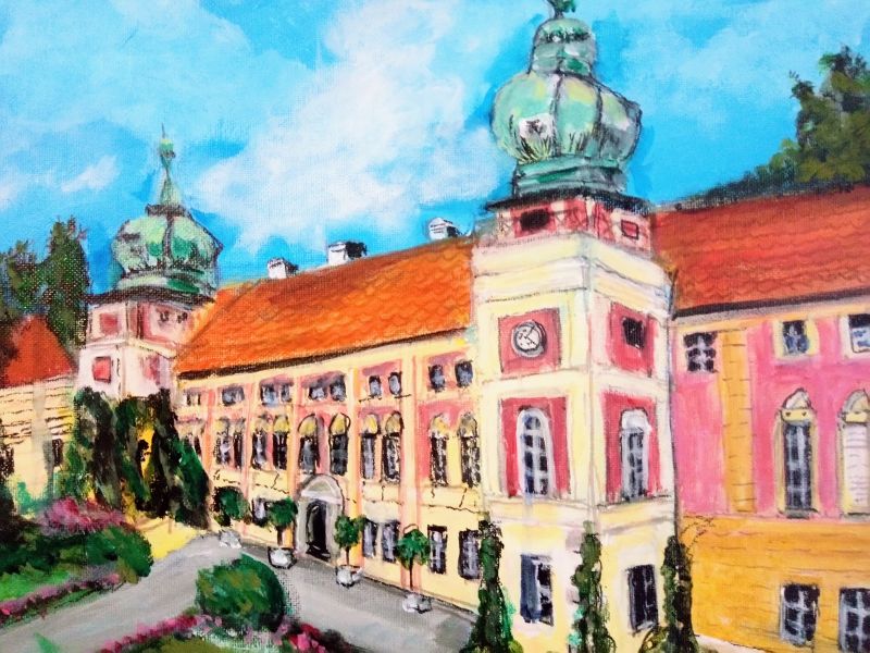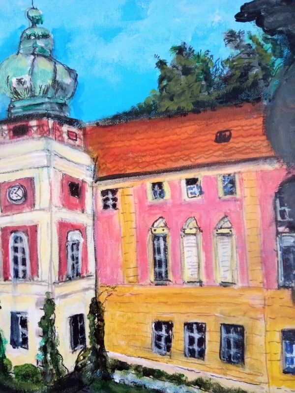 Powierzchnia obrazu powleczona impregnatem satynowym z połyskiem.