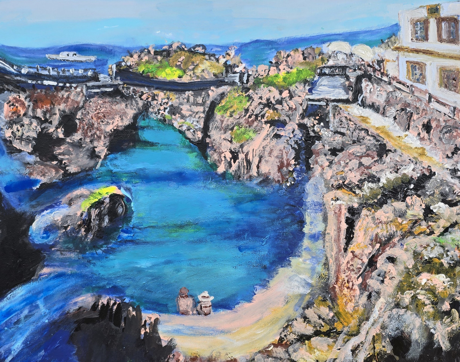 Powierzchnia obrazu powleczona impregnatem satynowym z lekkim połyskiem.