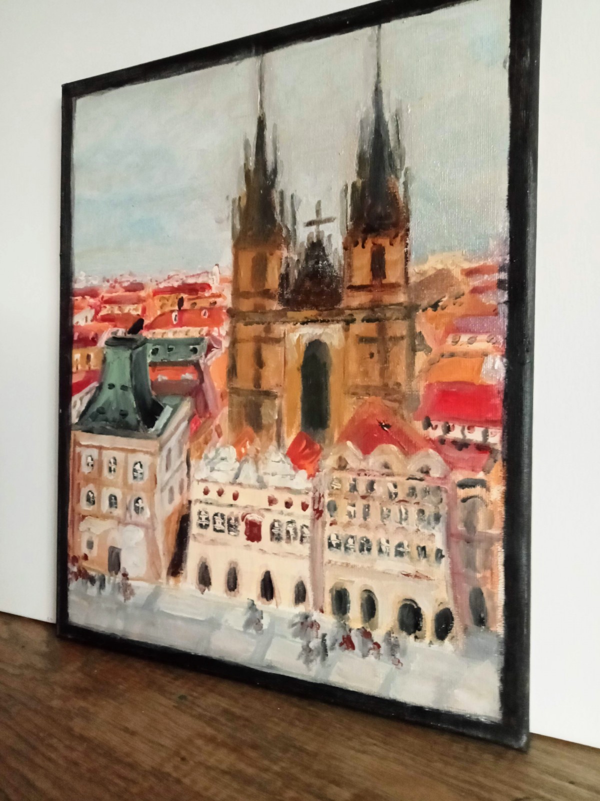 Obraz ręcznie malowany na płótnie naciągniętym na sosnowy blejtram.