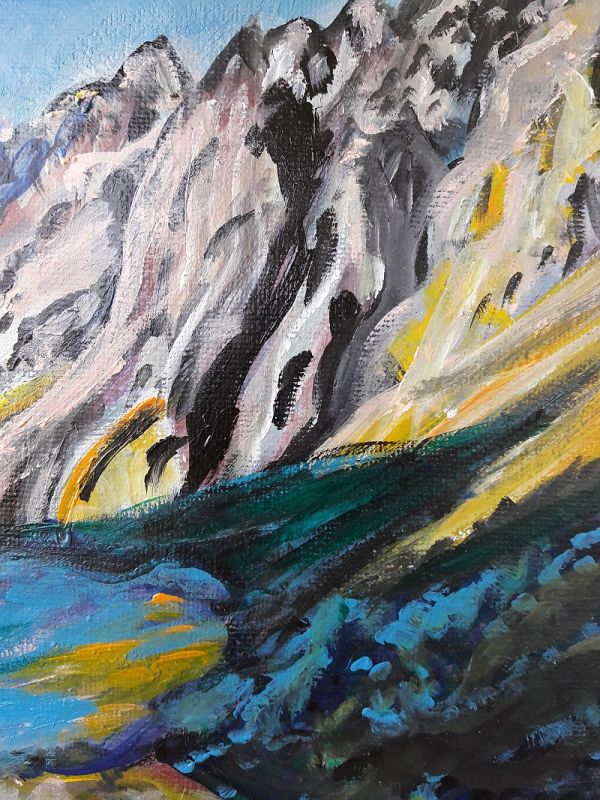 Powierzchnia obrazu powleczona impregnatem satynowym z lekkim połyskiem.