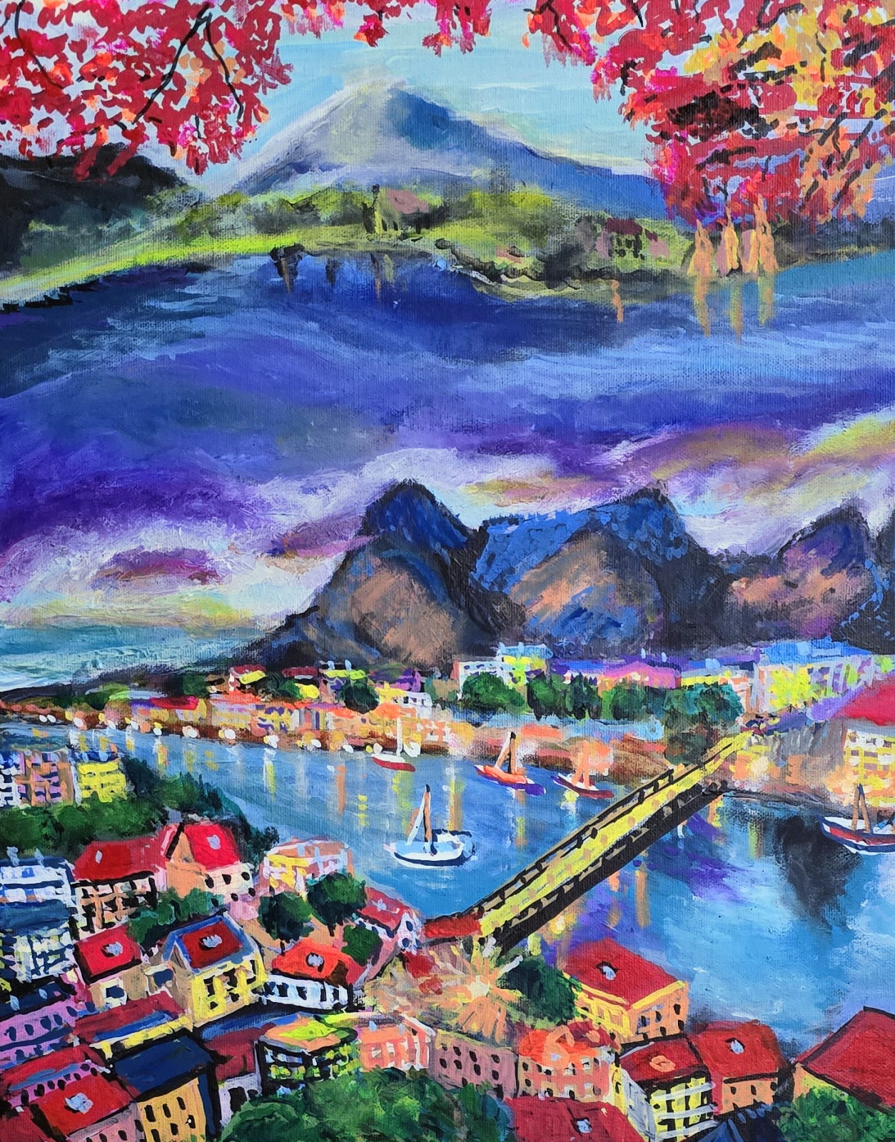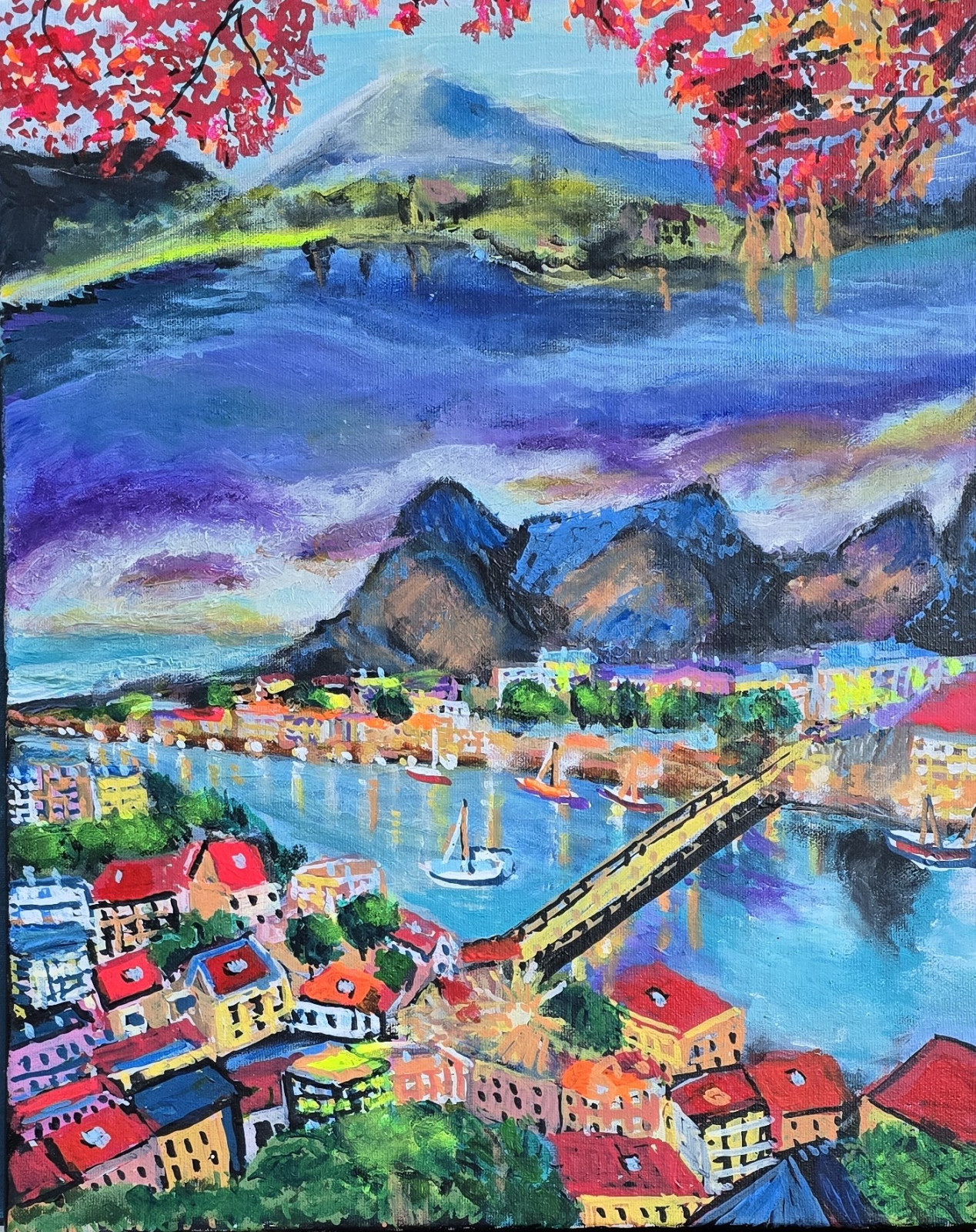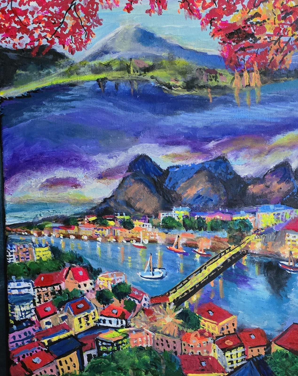technika akryl na płótnie naciągnietym na blejtram.