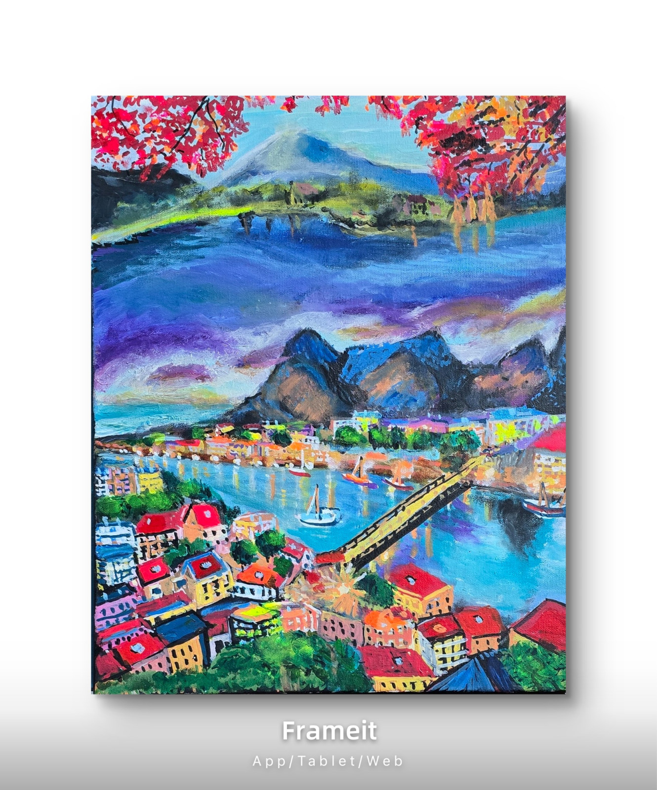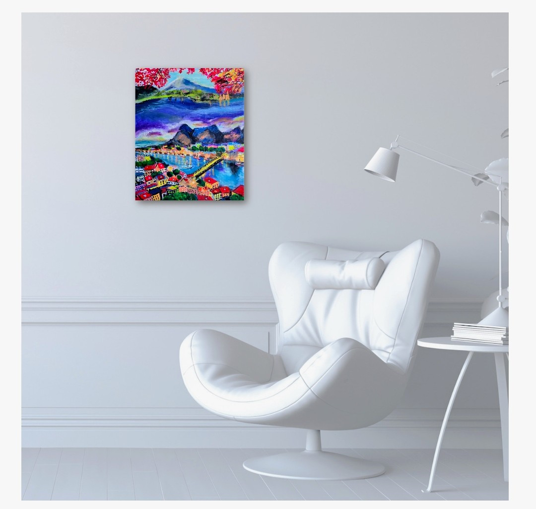 Boki pomalowane w kolorze obrazu. Obraz nadaje się do powieszenia. .