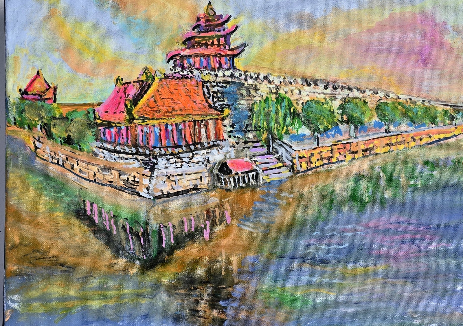Obraz akrylowy ręcznie malowany na płótnie naciągniętym na drewniany blejtram.