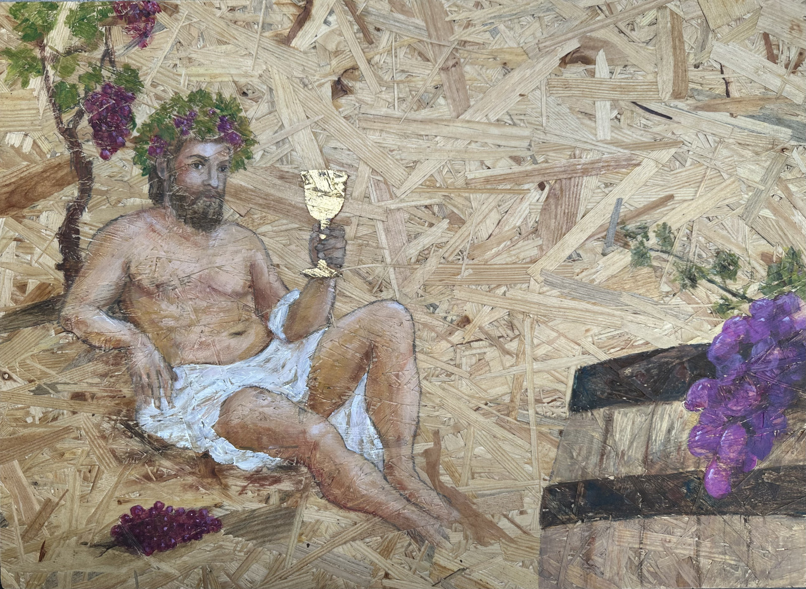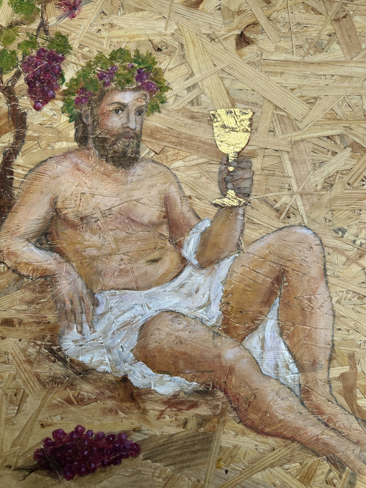 Obraz akrylowy na niestandardowym podłożu w postaci płyty OSB. Kielich ozdobiony 24 karatowym prawdziwym złotem płatkowym, którego szlachetność mocno podkreśla surowość płyty. Zamontowana zawieszka, obraz gotowy do powieszenia. Inspiracją do stworzenia było specjalne wino tak zwane słomkowe. Obraz będzie bardzo dobrym prezentem do ozdoby barku, piwniczki winnej, dla miłośników wina.