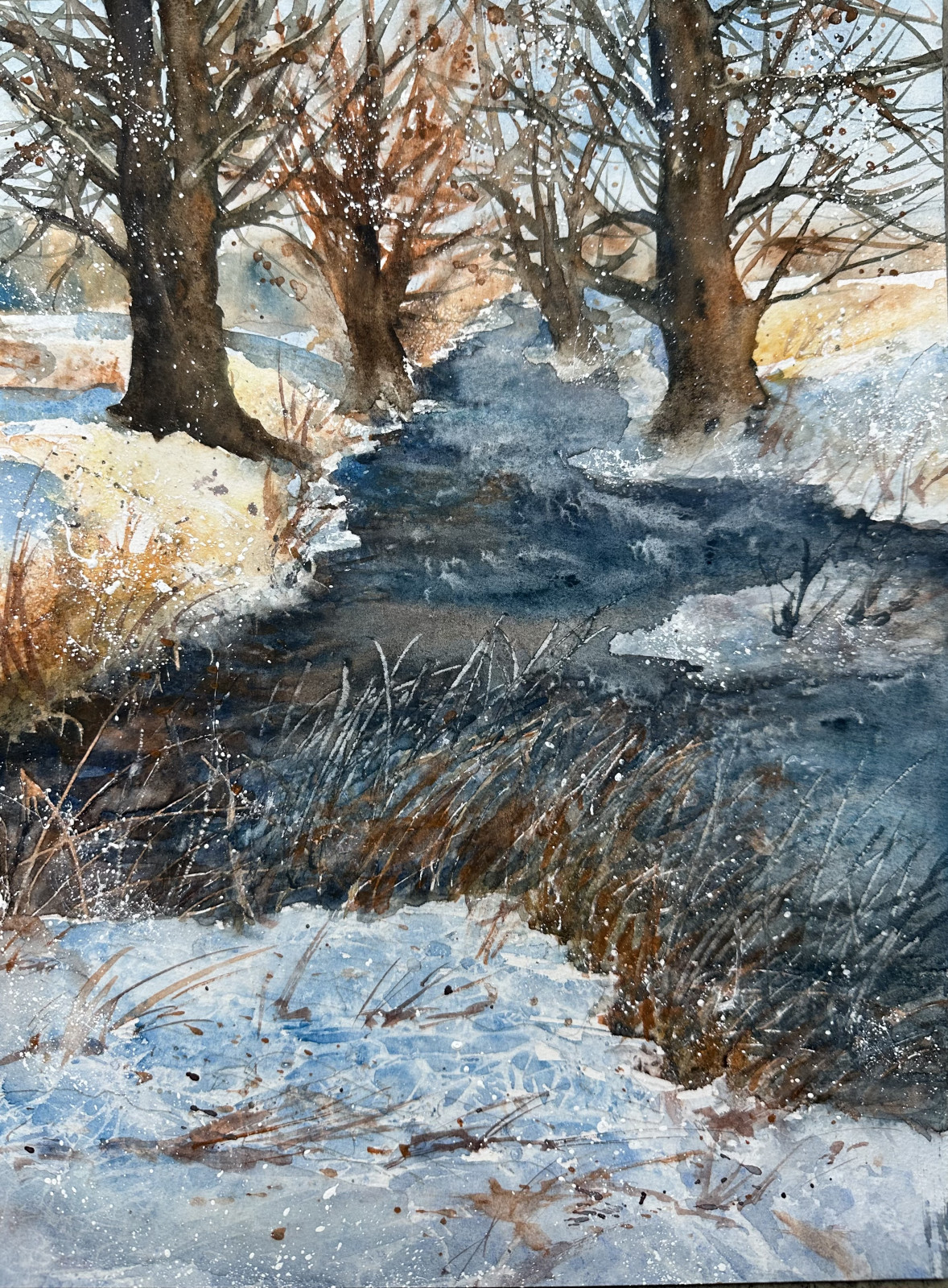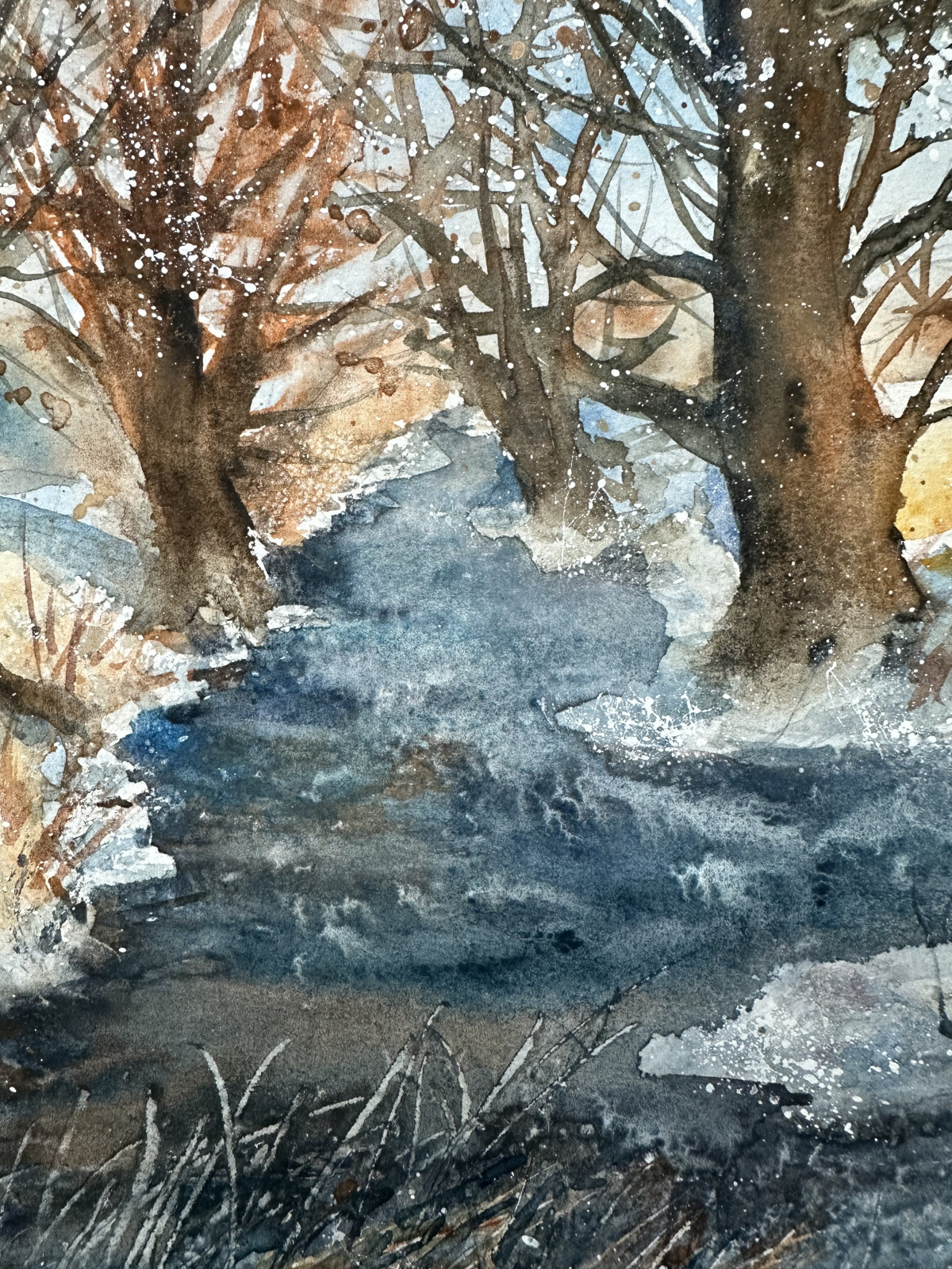 Obraz akwarelowy namalowany na profesjonalnym papierze amerykańskimi akwarelami firmy Daniel Smith. Oprawiony w białe passepartout o wymiarach zewnętrznych 30x40 cm. Pasuje do każdej standardowej ramki 30x40 cm.