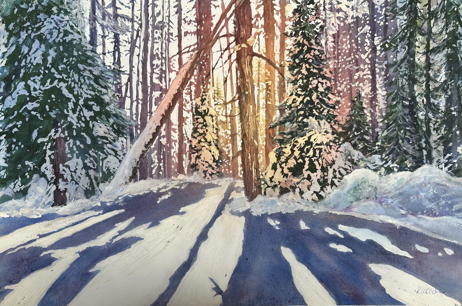 Nastrojowa akwarela namalowana na profesjonalnym papierze farbami amerykańskiej firmy Daniel Smith. Oprawiona w passepartout o wymiarze zewnętrznym 50x70 cm. Pasuje do każdej standardowej ramy 50x70 cm.