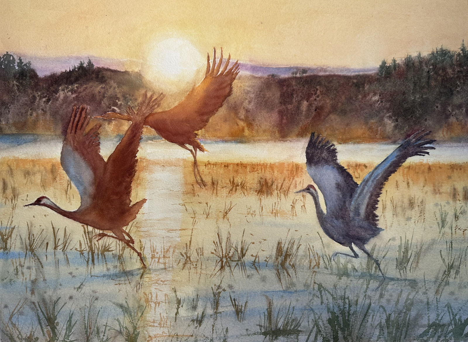 Akwarela namalowana na profesjonalnym papierze farbami akwarelowymi amerykańskiej firmy Daniel Smith. Sam obraz ma wymiary 50x35 cm, oprawiony w passepartout o wymiarze zewnętrznym 50x70 cm,mpasuje do standardowej ramy 50x70 cm.