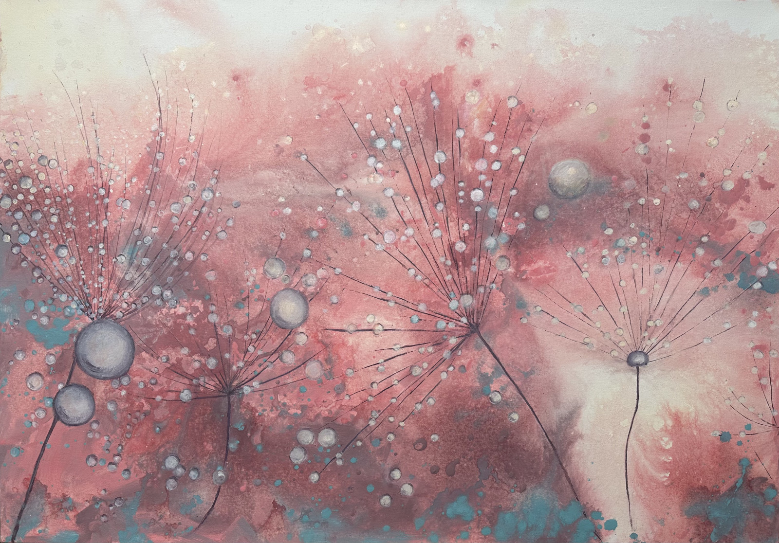 Obraz olejny na podobraziu o wymiarach 100x70 cm. Boki zamalowane w kolorach obrazu, zawerniksowany, zamontowane 2 zawieszki, gotowy do powieszenia.
