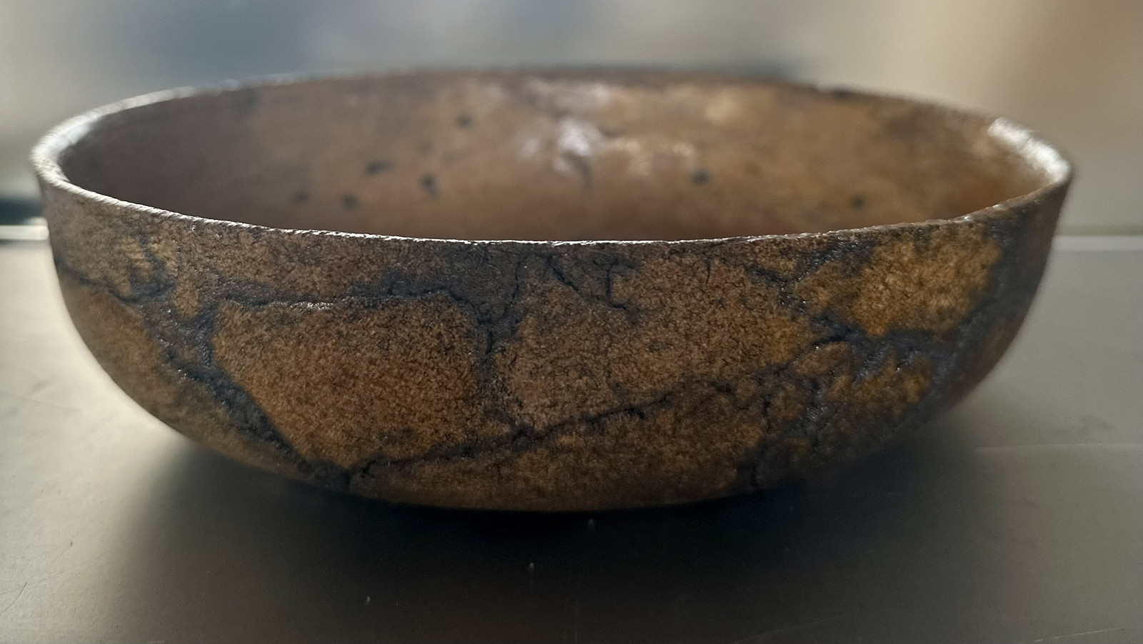 Ceramiczna miseczka, robiona w taki sposób, że z każdej strony wygląda inaczej. Kolejną ozdobą jest szkliwo.