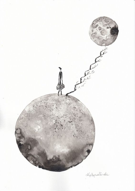 Rysunek pochodzi z cyklu Dreams, będącego refleksją o podążaniu za marzeniami - sięganiu po swój własny księżyc.