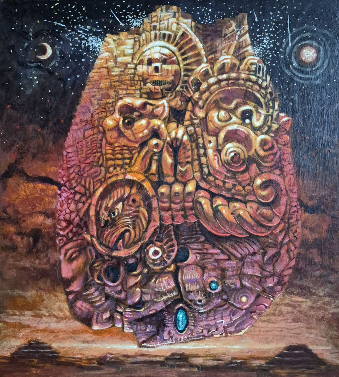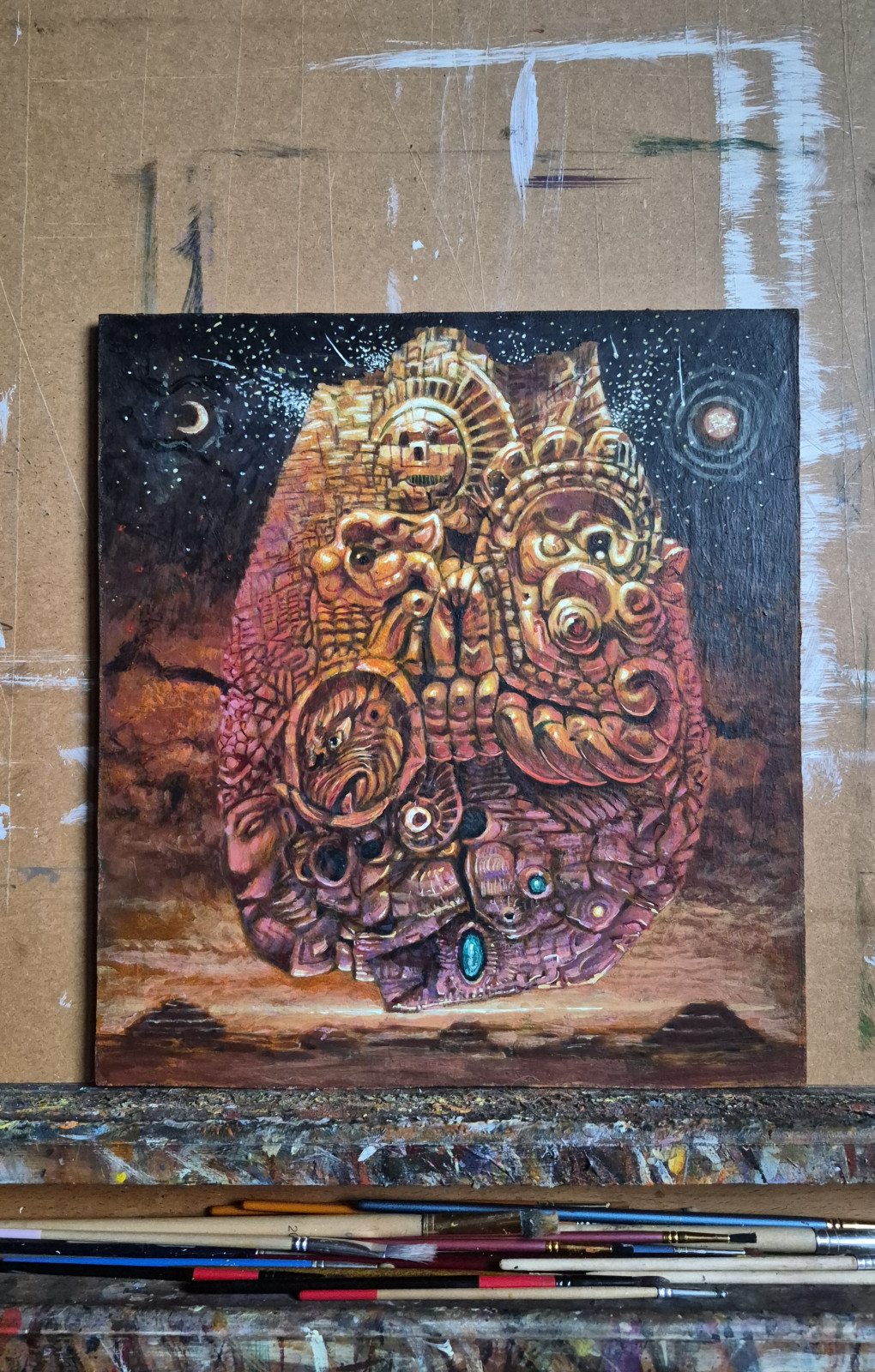 Fantastyka i realizm magiczny w malarstwie zaklęty. Obraz akrylowy na płycie malarskiej 34 cm x 31 cm