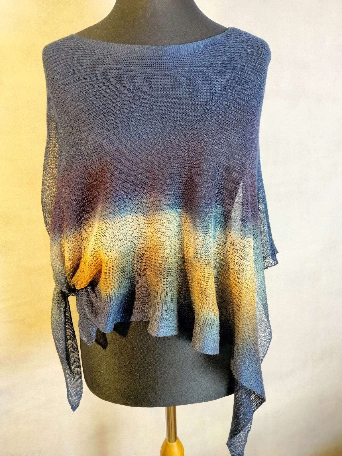 Ponczo narzutka lniana zakladana przez głowę. Mozna nosić na rożne sposoby, motać , wiązać itd.
