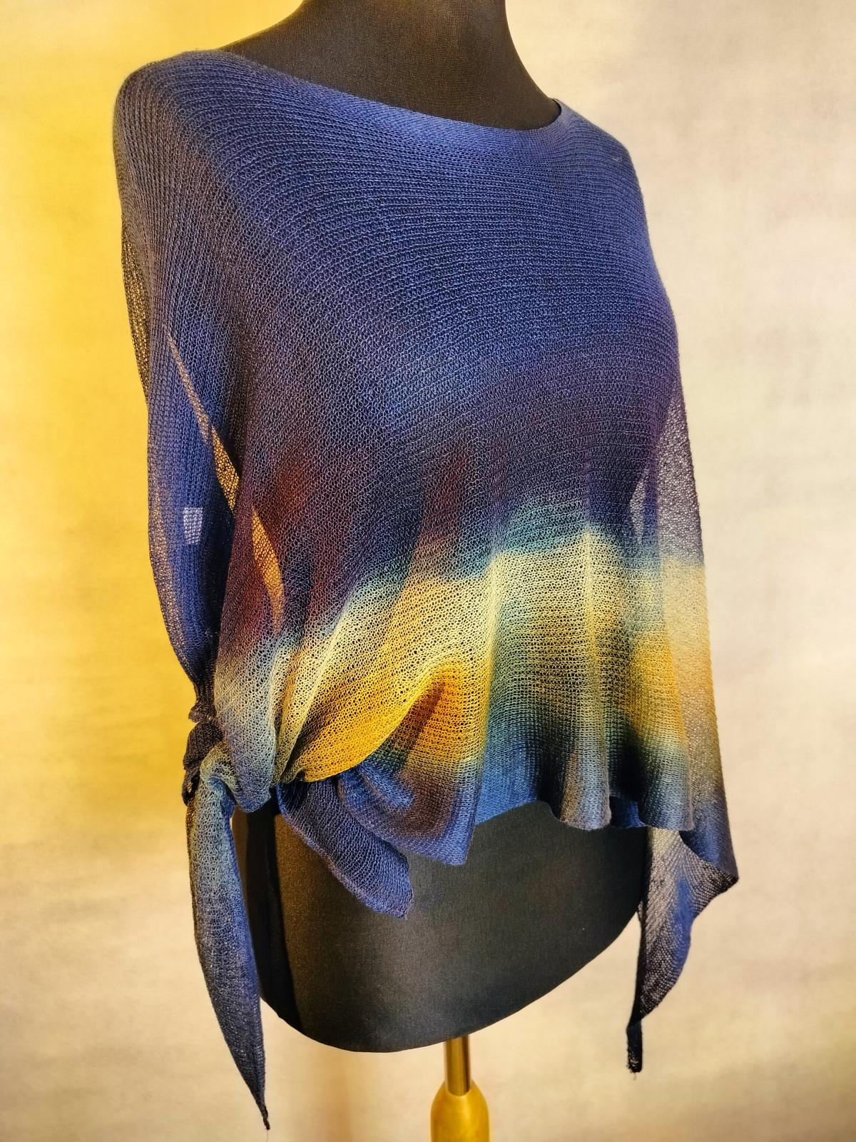 Lniane ponczo w kolorze granatowym, malowane ręcznie
