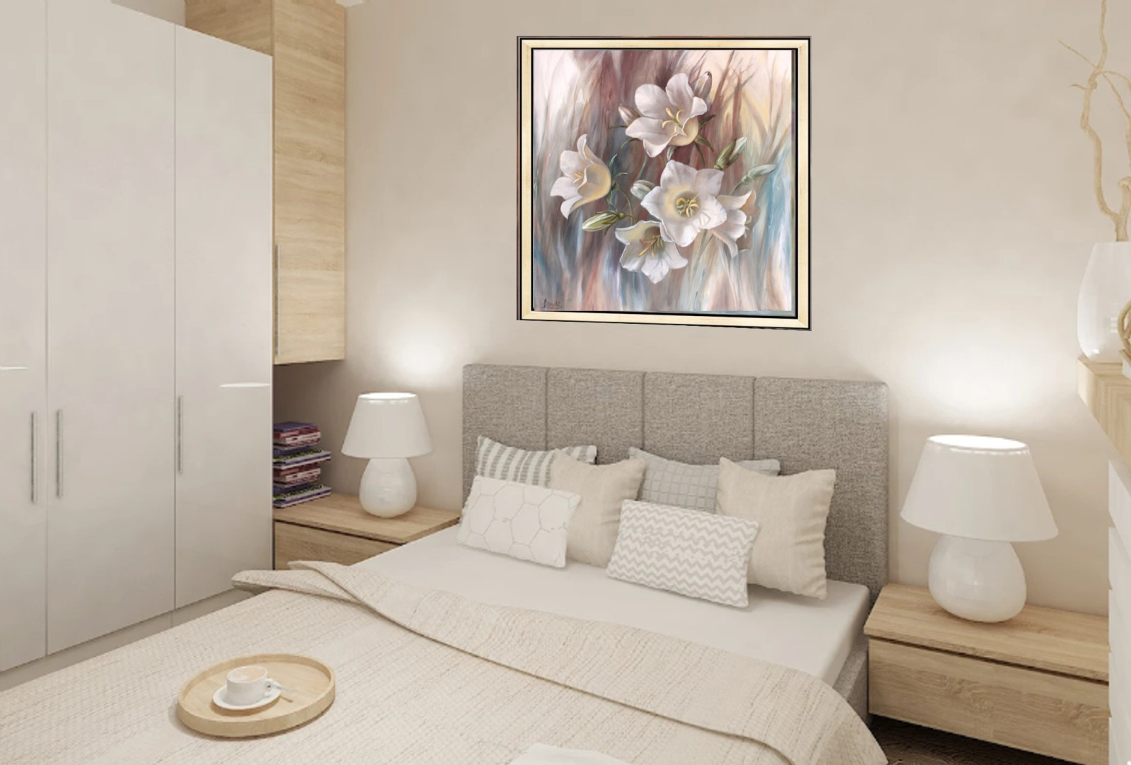 Boki obrazu są zamalowane zgodnie z jego kolorystyką, co powoduje, że równie dobrze prezentuje się bez ramy.