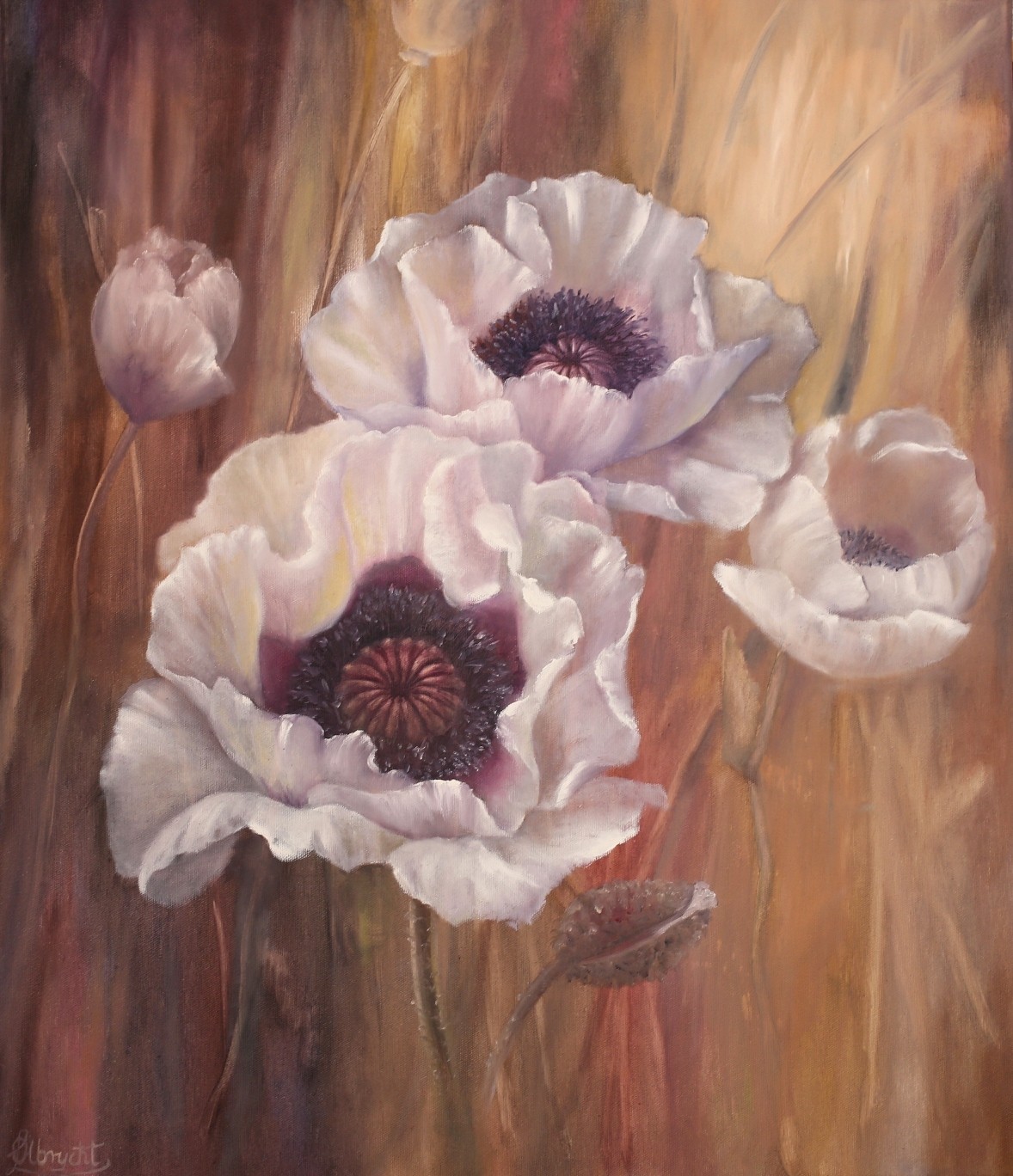 Białe Maki Ogrodowe, ręcznie malowany na płótnie