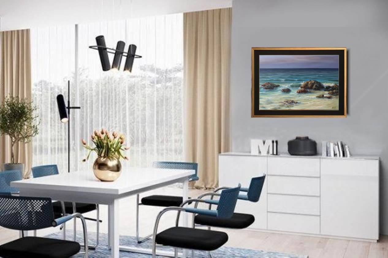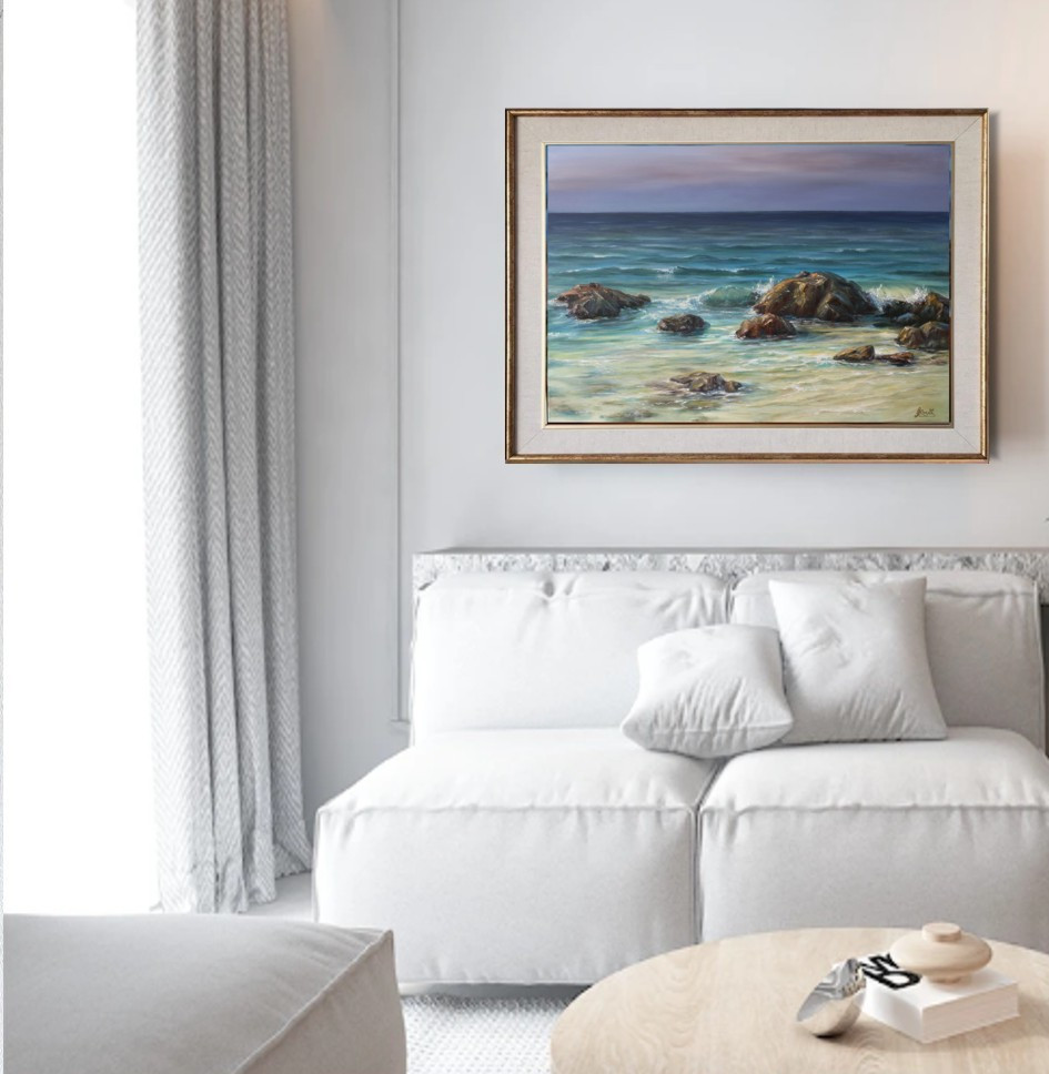 Boki obrazu są zamalowane zgodnie z jego kolorystyką, co powoduje, że równie dobrze prezentuje się bez ramy.