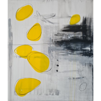Obraz na płótnie o wymiarach 140x120cm, akryl + pastele, rok 2021. Boki utrzymane w kolorystyce obrazu, sygnowany na odwrociu.
