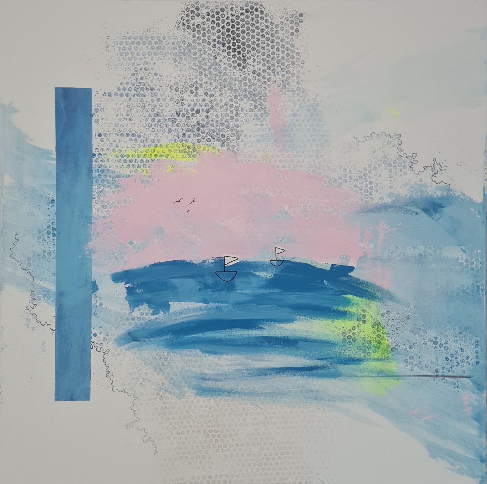 Obraz na płótnie o wymiarach 100x100 cm, akryl.