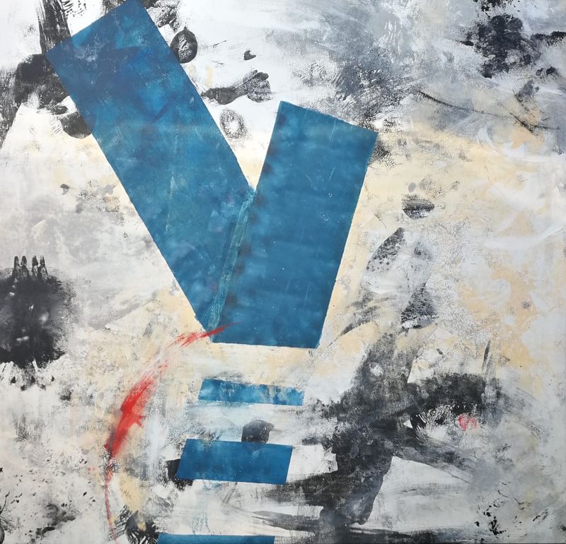Obraz na płótnie o wymiarach 120x110 cm, akryl, technika własna. Boki utrzymane w kolorystyce obrazu.