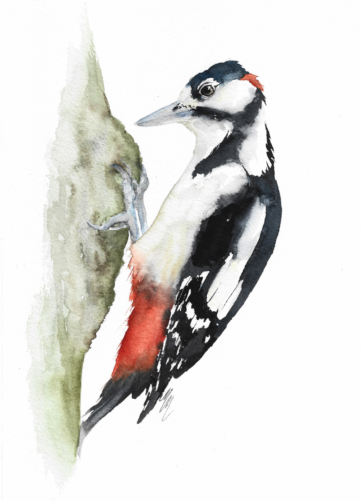 Dzięcioł duży - akwarela