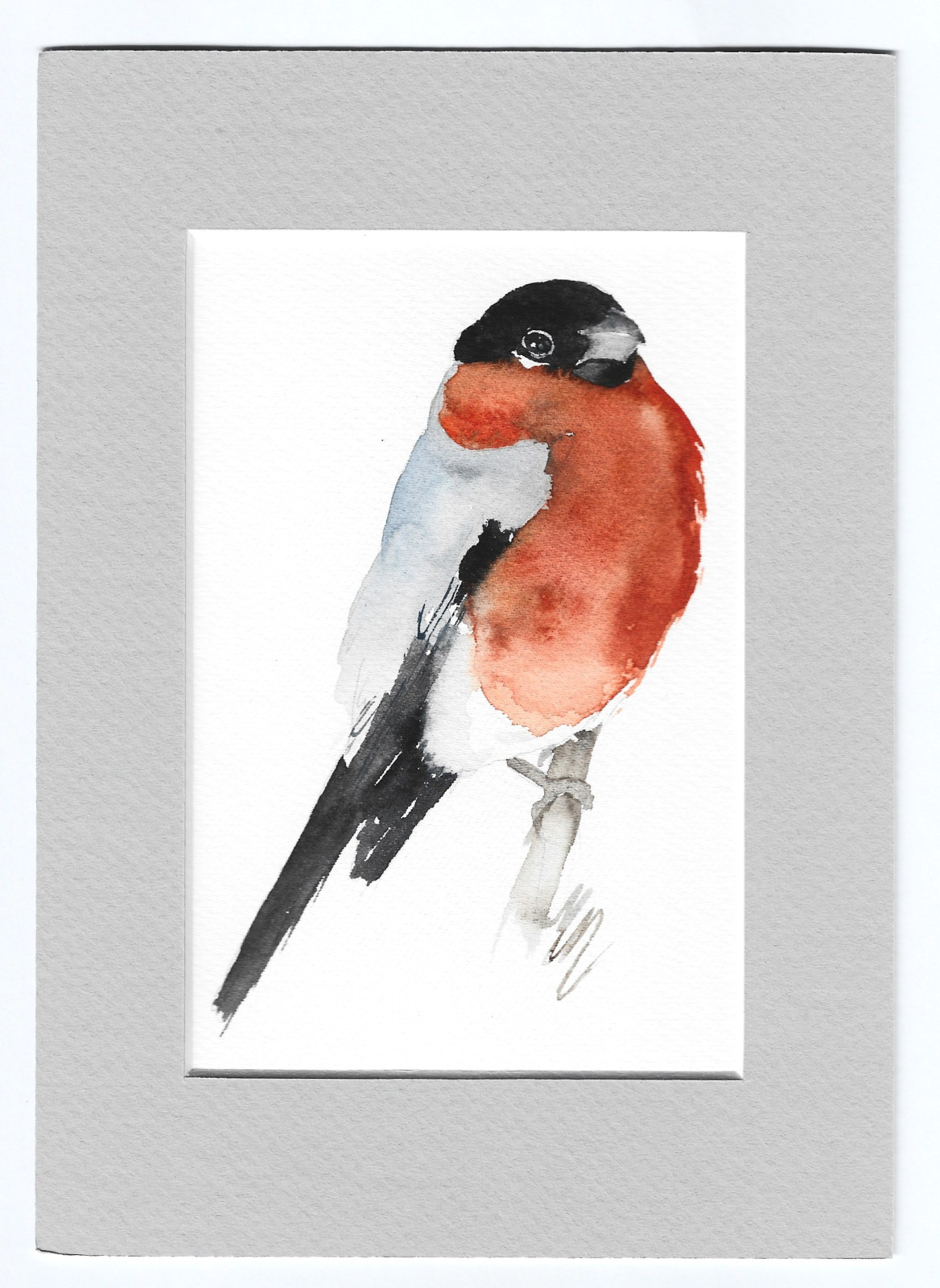 Ręcznie namalowany obraz akwarelowy oprawiony w ramkę passe-portout w kolorze szarym