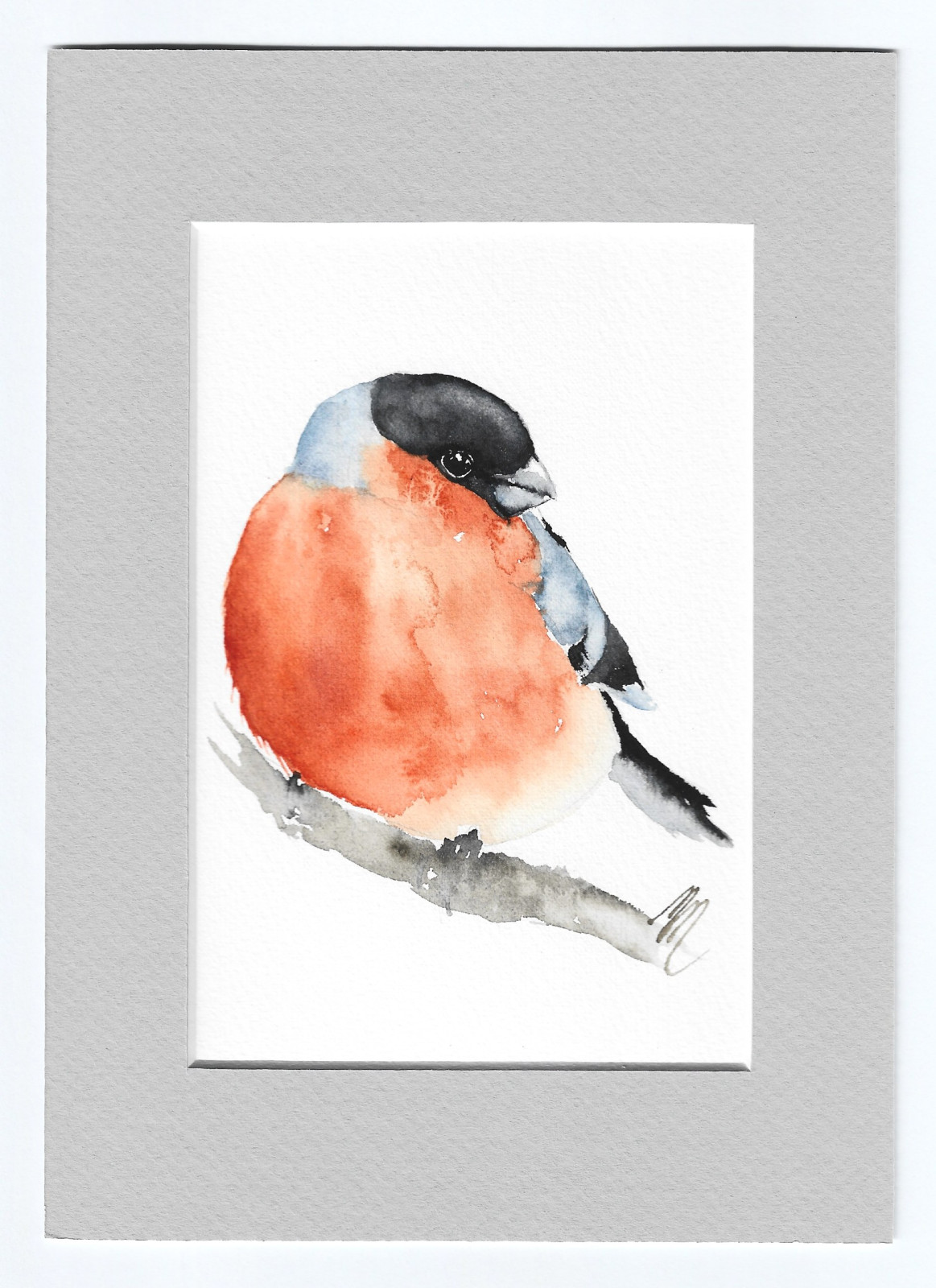Ręcznie namalowany obraz akwarelowy oprawiony w ramkę passe-portout w kolorze szarym