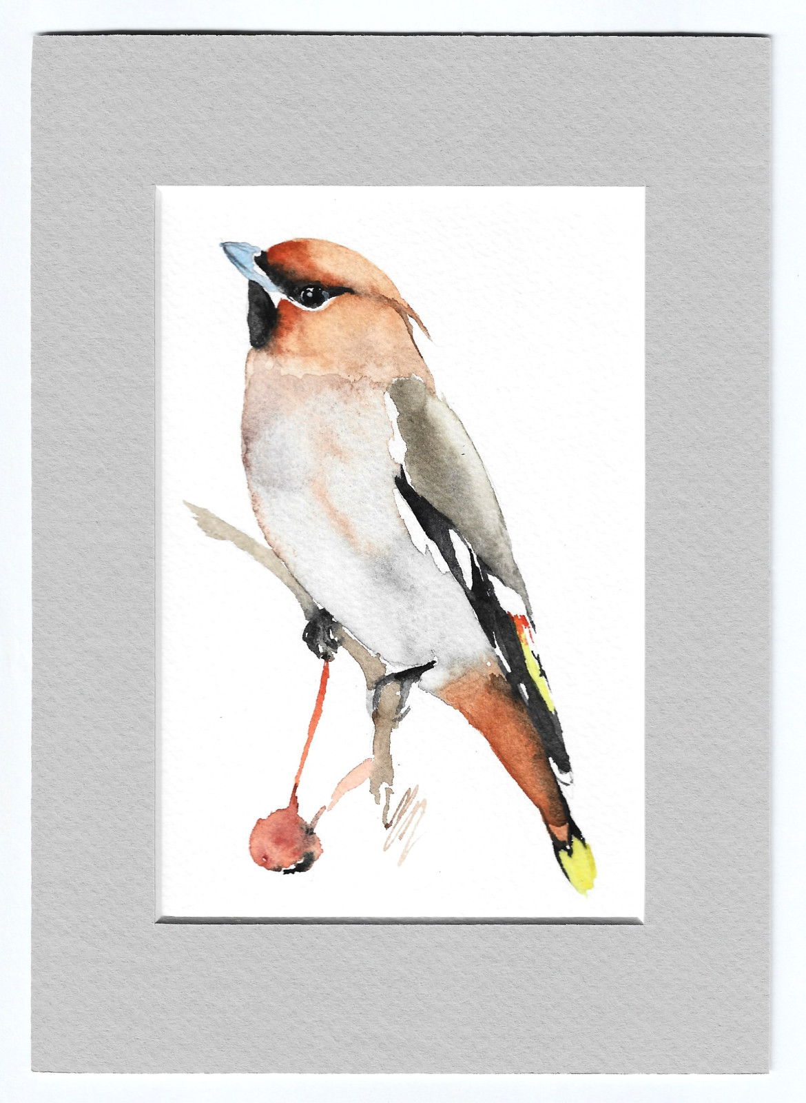 Jemiołuszka - akwarela z passe portout