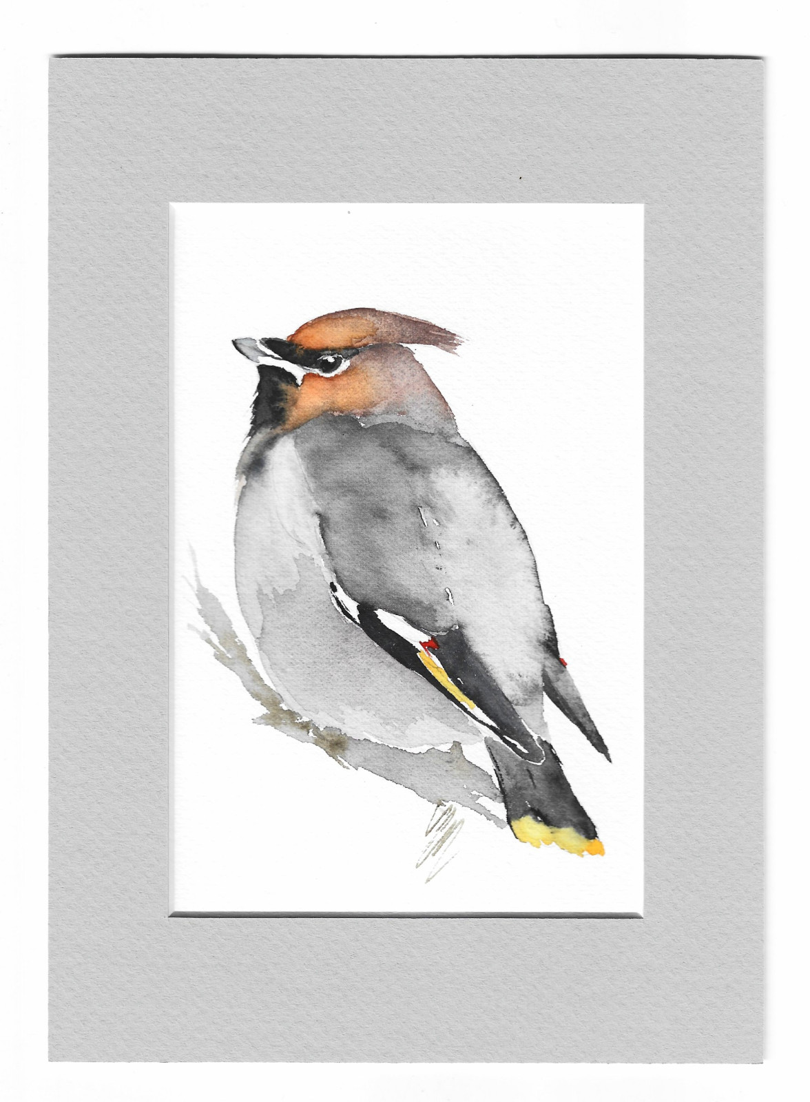 Ręcznie namalowany obraz akwarelowy oprawiony w ramkę passe-portout w kolorze szarym