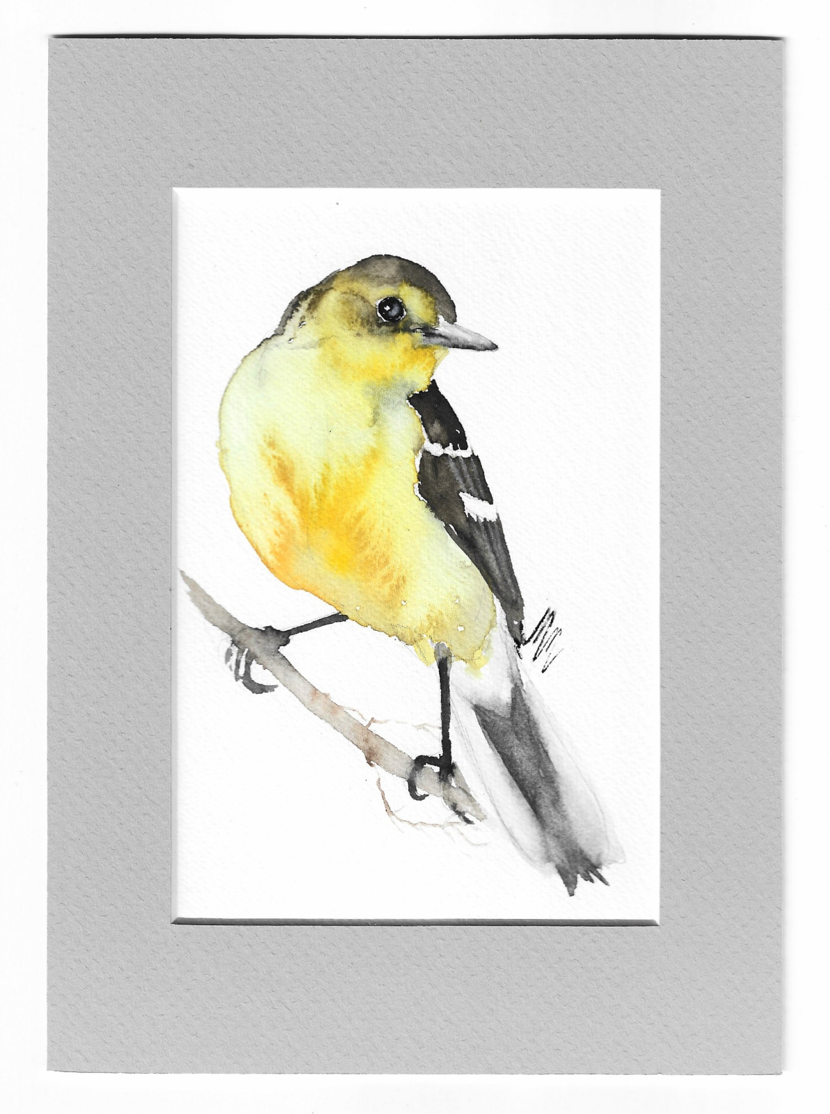 Ręcznie namalowany obraz akwarelowy oprawiony w ramkę passe-portout w kolorze szarym