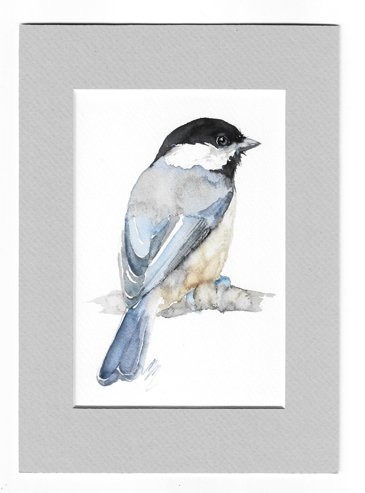 Sikora czarnogłówka - akwarela z passe portout