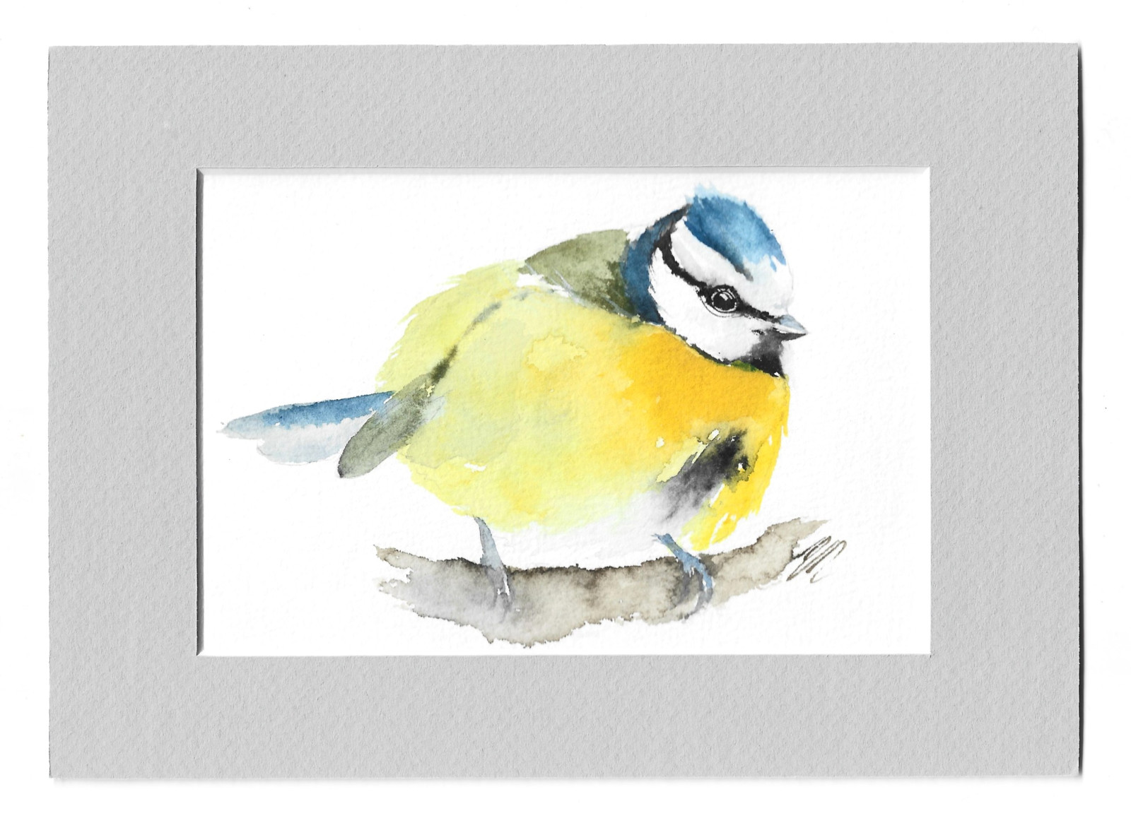 Ręcznie namalowany obraz akwarelowy oprawiony w ramkę passe-portout w kolorze szarym