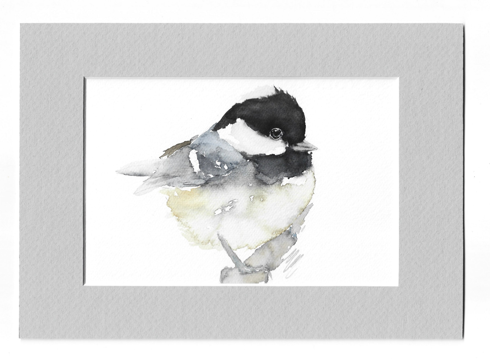 Ręcznie namalowany obraz akwarelowy oprawiony w ramkę passe-portout w kolorze szarym