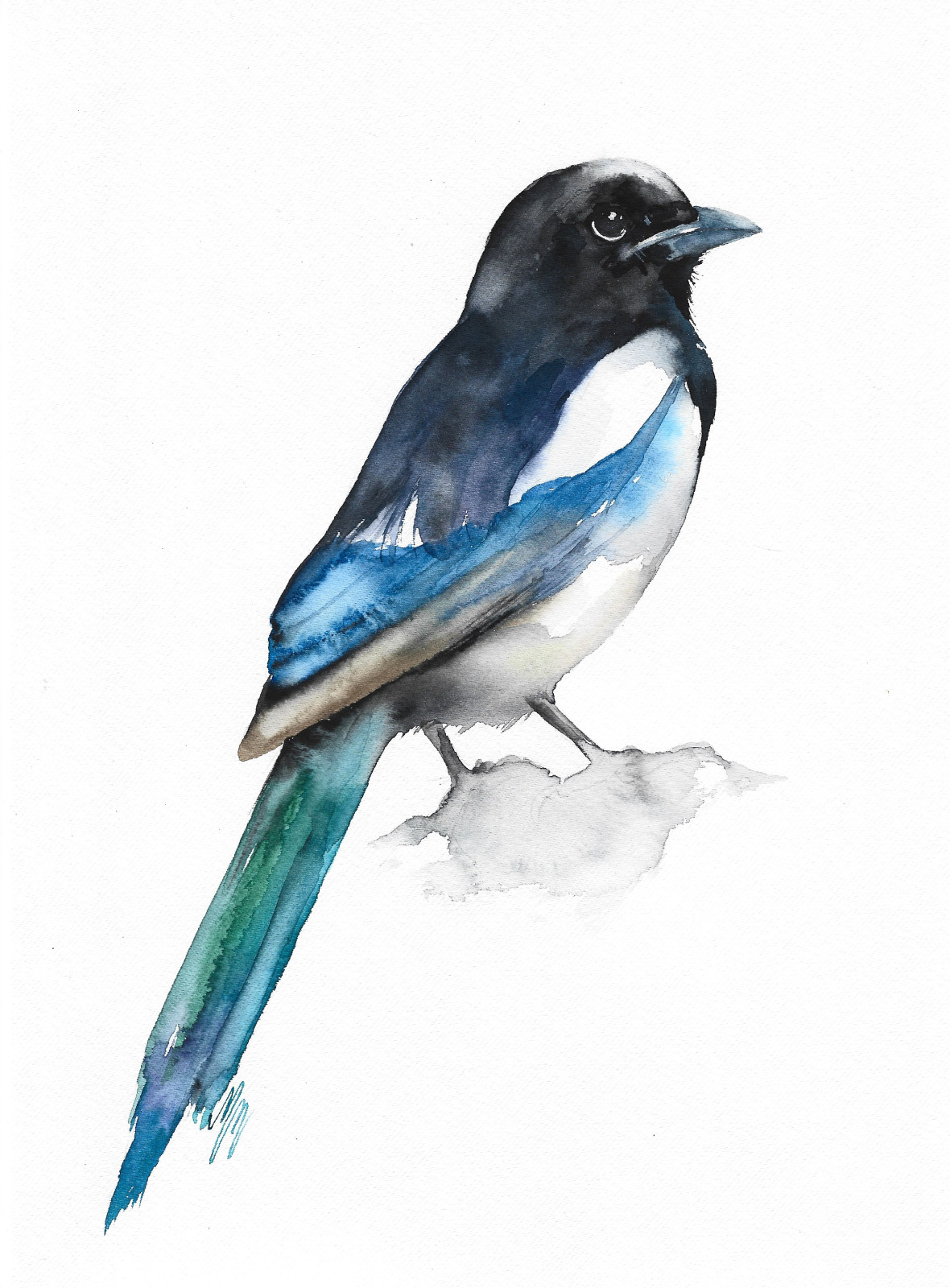 Sroka - akwarela