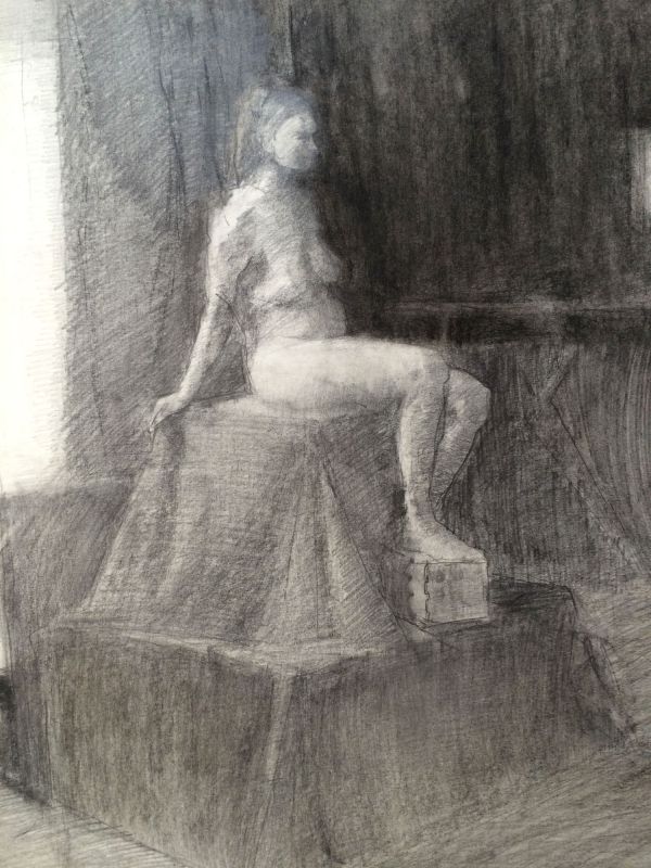 Praca wykonana na kartonie ołówkiem i węglem. Wymiary: 70 x 100 cm. Oprawiony w aluramę.