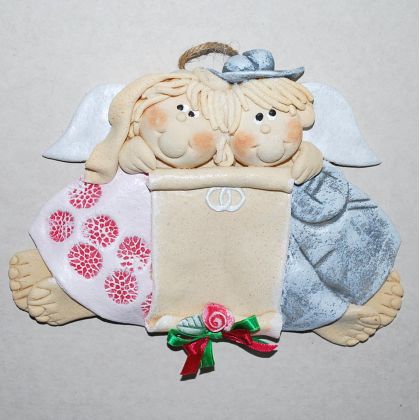 Para aniołków ślubnych z masy solnej - to prezent dla nowożeńców bądź jubilatów...