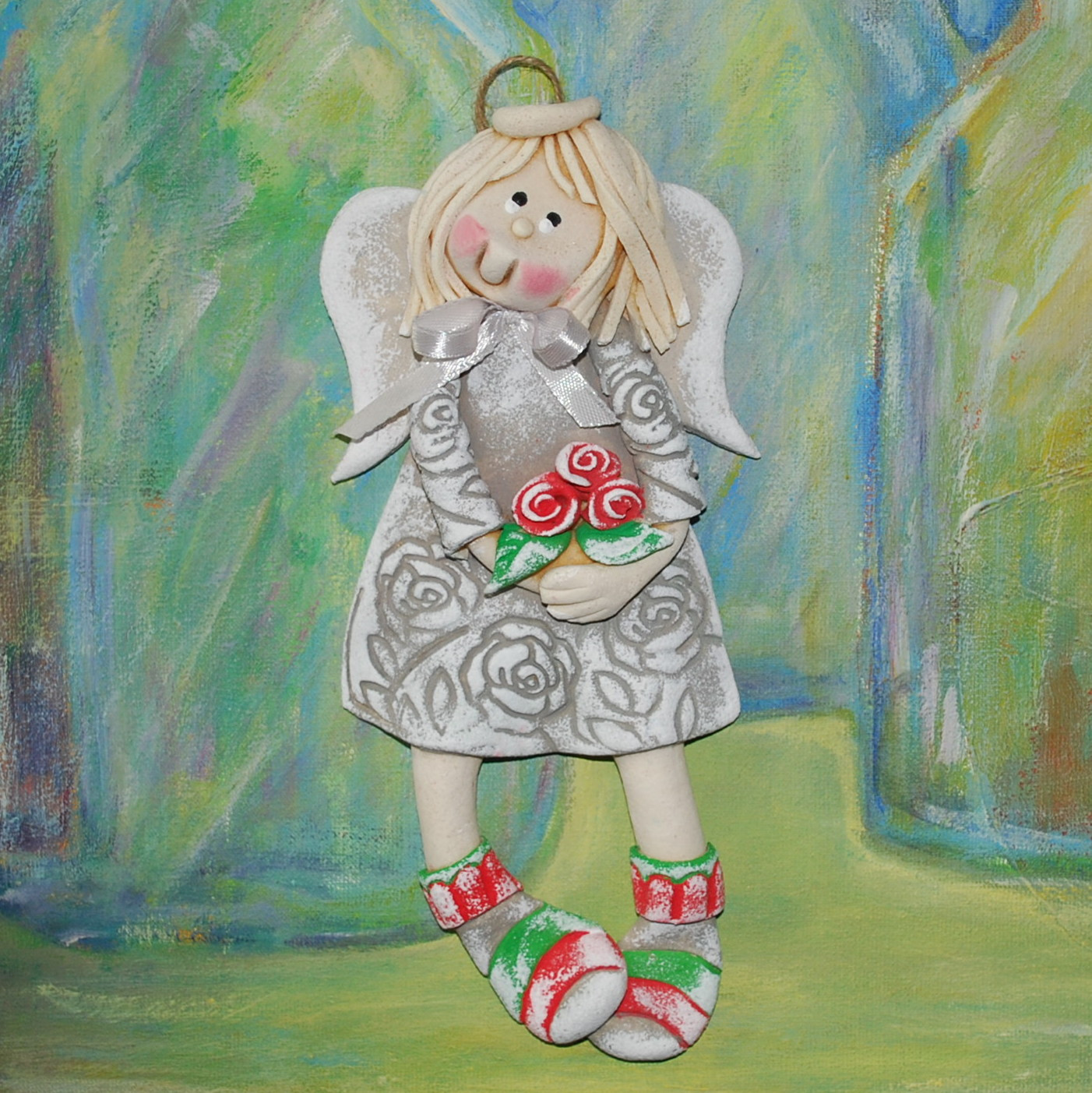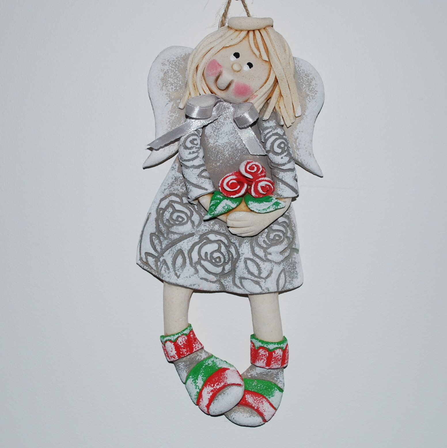 Komu Róże? Komu? - aniołek z masy solnej, prezent, dekoracja