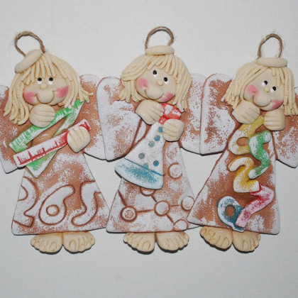 Każdy posiada atrybut związany z przedmiotem jakiego nauczał. Do ich wykonania wykorzystałam masę solną, samodzielnie ją “kulając”. Następnie anioły trafiły do piekarnika na ok 8-10 godzin. Malowanie i ozdabianie to także ręczna “robota”. Każdy posiada zawieszkę w postaci dratwy lub sznurka konopnego i z tyłu zabezpieczony jest lakierem akrylowym. Do wysyłki, pojedynczo pakuję je w celofanowy woreczek i przewiązuję rafią naturalną.