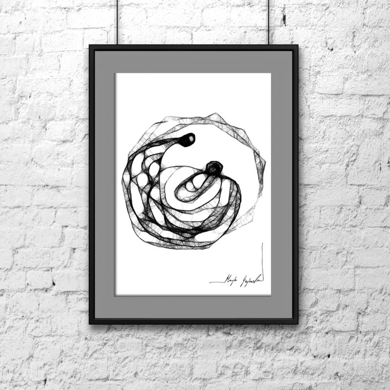 Grafika wykonana techniką mieszaną na papierze białym FABRIANO. Format 30x21cm. Grafika jest oprawiona - czarna, satynowa, aluminiowa rama oraz grafitowe passe partout. Limitowana seria.