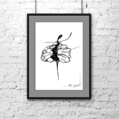 Grafika wykonana techniką mieszaną na papierze białym FABRIANO. Format 30x21cm. Grafika jest oprawiona - czarna, satynowa, aluminiowa rama oraz grafitowe passe partout. Limitowana seria.