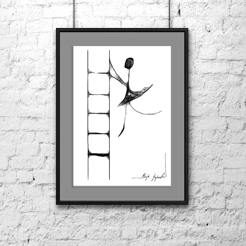 Grafika wykonana techniką mieszaną na papierze białym FABRIANO. Format 30x21cm (dostępny również format 40x30 cm - cena do uzgodnienia). Grafika oprawiona - czarna, aluminiowa, satynowa rama oraz grafitowe passe partout. Limitowana seria.