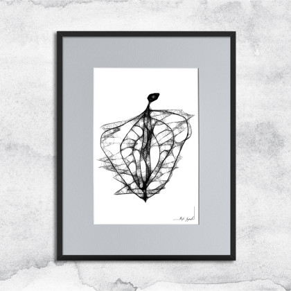Grafika wykonana techniką mieszaną (giclée+rysunek isografem) na białym, matowym o lekko fakturowanej powierzchni, graficznym papierze Canson 160g. Unikalna kreska wygląda bardzo efektownie, zaś czarno-białe wykończenia wnętrz idealnie wpisują się w puste ściany nowoczesnych, minimalistycznych czy loftowych powierzchni.